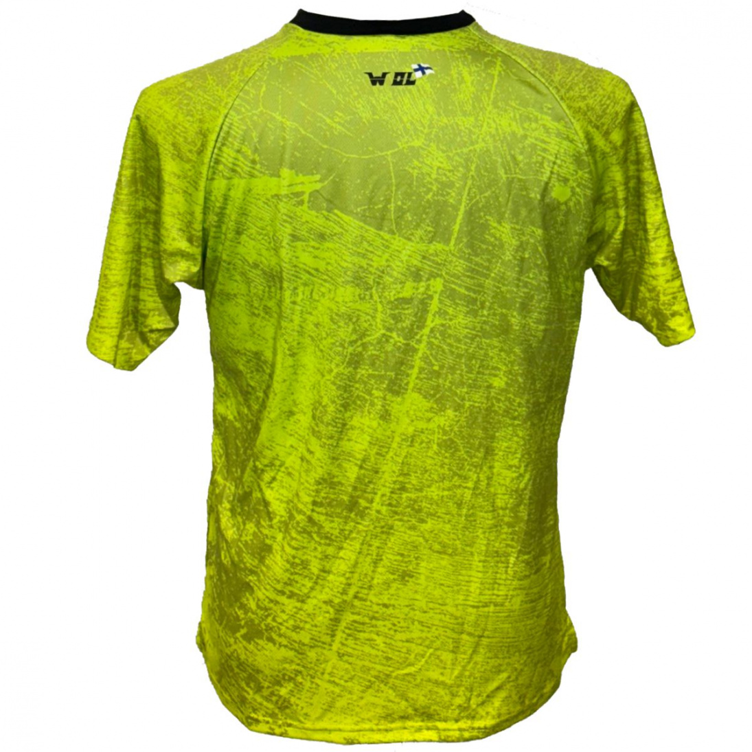 Perinteinen väljempi leikkauksinen suunnistuspusero maastokuvio-painatuksella.